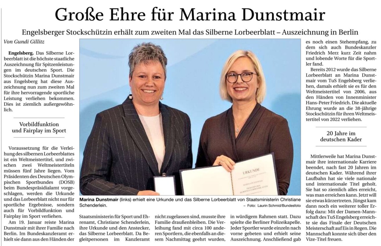 30.01.26Silbernes Lorbeerblattfür Marina DunstmairTrostberger Tagblatt